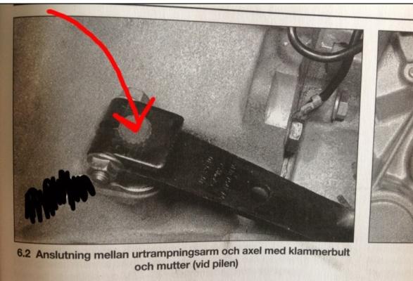 Hei alle sammen. Jeg har en Ford Escort 1997. En venn skulle mens jeg var på ferie justere clutchen på bilen. Han klarte å dra løs stangen som går ned til clutchen (Svensk haynes kaller den for urtrampningsaxelen). Nå er den løs og sitter ikke skikkelig. Mildt sagt ikke kjørbar.. Må jeg demontere hele clutchen for å få fikset dette, eller er det en annen smart måte? Denne armen skrudde han av, og da løsnet stangen (rød pil) som går ned til clutchen. Tror han brukte stor kraft..: [ATTACH]39786[/ATTACH] Her er bilde av den løse stangen som, med fjernet arm: [ATTACH]39784[/ATTACH] Nærbilde av den nå løse delen. (skal egentlig gå 2 cm lenger ned): [ATTACH]39785[/ATTACH] Setter stor pris på alle hjelp!!