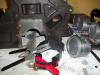 Måtte eg selvsagt finne feil i støpingen i blokka som måtte slipes ned og så måtte eg vaske blokka på ny igjen. Blokka etter vask, håper eg slipper og vaske den igjen :) Delene ligger klar Fekk montert stempelfjærene på ett stempel og siden eg renset stemplene i går måtte eg ta av c klipset og låsebolten men når eg skulle montere C-klipset spratt det vegg imellom, har endevendt heile boden men kan ikkje finne det dumme klipset så eg må ha ett nytt. Fekk verktøyene til montering av stempelfjærer og for og få stemplene i sylinderen i posten på fredag.