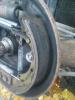 Har kjøpt meg en "ny" Golf 3, som erstatning for den forrige. Én toer på PKK: "Forskjell i bremsekraft mellom hjul på samme aksel større enn 30 % av høyeste verdi. Eller kjøretøyet avviker sterkt fra en rett linje ved prøving på vei - Venstre bak." Betyr det at venstre bak har sterkere eller svakere bremsekraft enn høyre bak? Jeg åpnet tromlene og tok en kikk, men der var tørt og fint. Lettet på pakningene på hjulsylindrene, men kunne ikke se noen lekkasje. Tromlene hadde omtrent ikke spor i seg; ca. 1 mm, og bremsebelegget ser tykt ut. Under er bilder av trommelinnholdet; i rekkefølge fra venstre mot høyre.