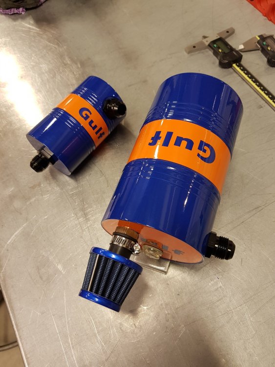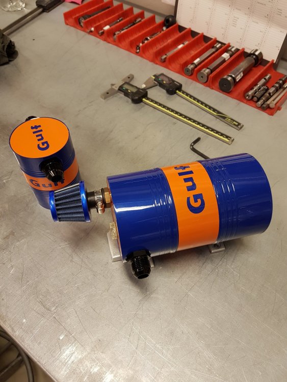 Har laga olje separator til rs turbo'n å er i gang med å lage olje catch tank av samme slag. Planen er å starte å gjøre litt på bilen igjen når snøen forsvinner.