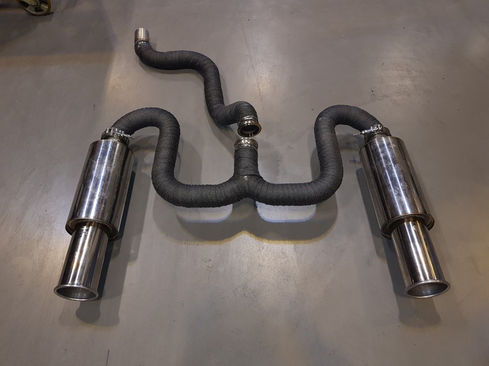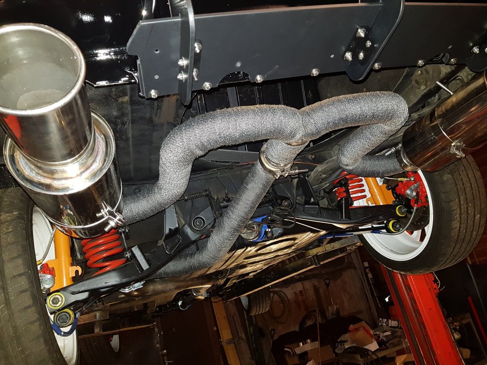 Veit ikke hvor varmt det blir baki der, men den ene eksosrøren kom farlig nære bensin påfyllings røren av plastikk den andre delen av eksosen kom ganske nære uttaket til bensinpumpa å der er det plastikk slange, så i steden for å ha på bandasje bare der så blei det på alt. Er vel kanskje ikke mest gunstig men sånn blei det nå.