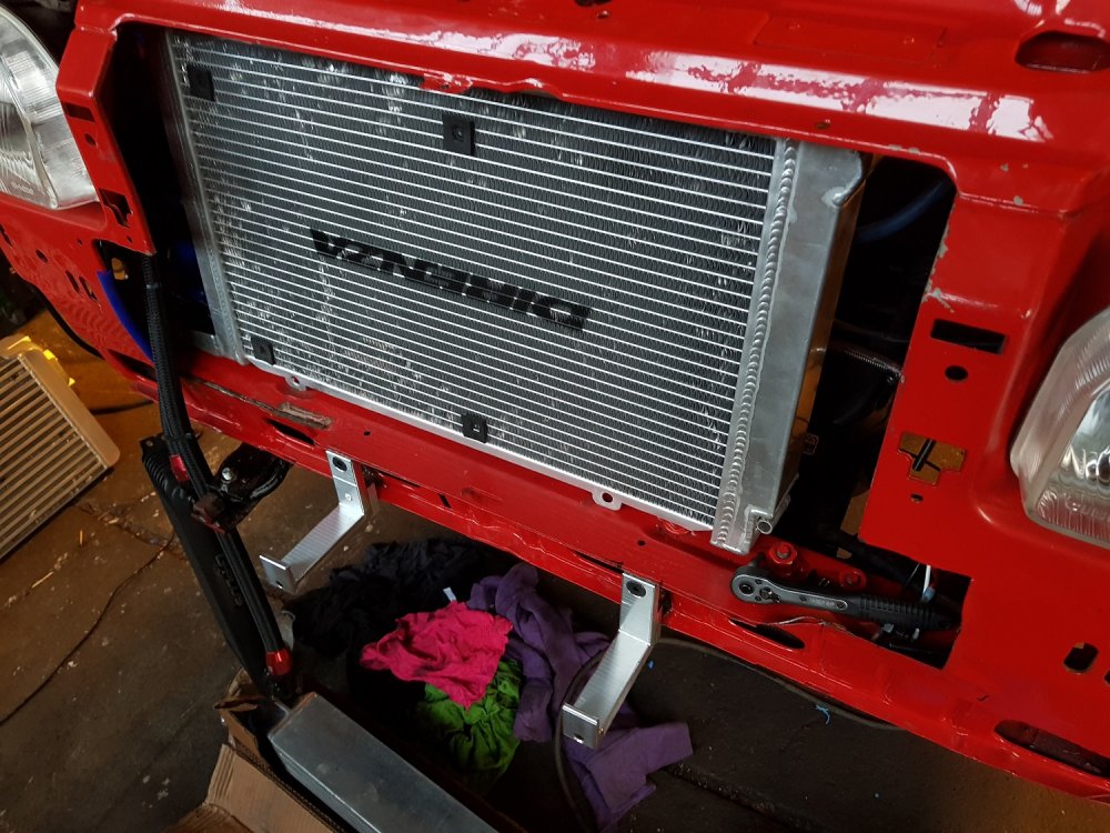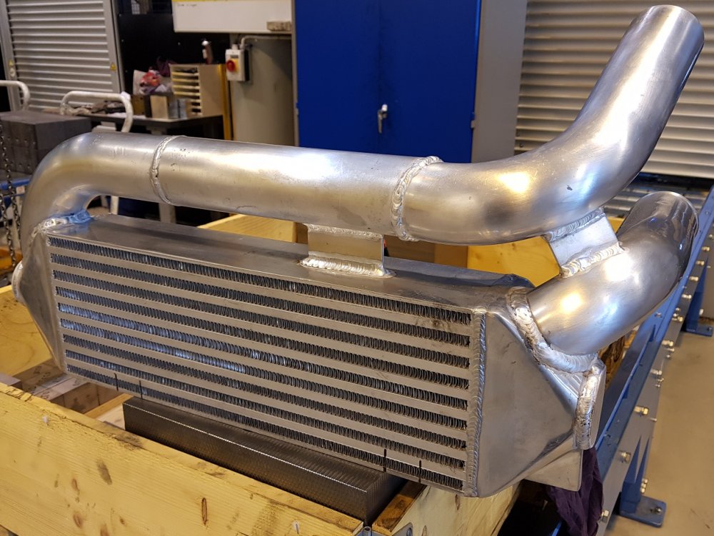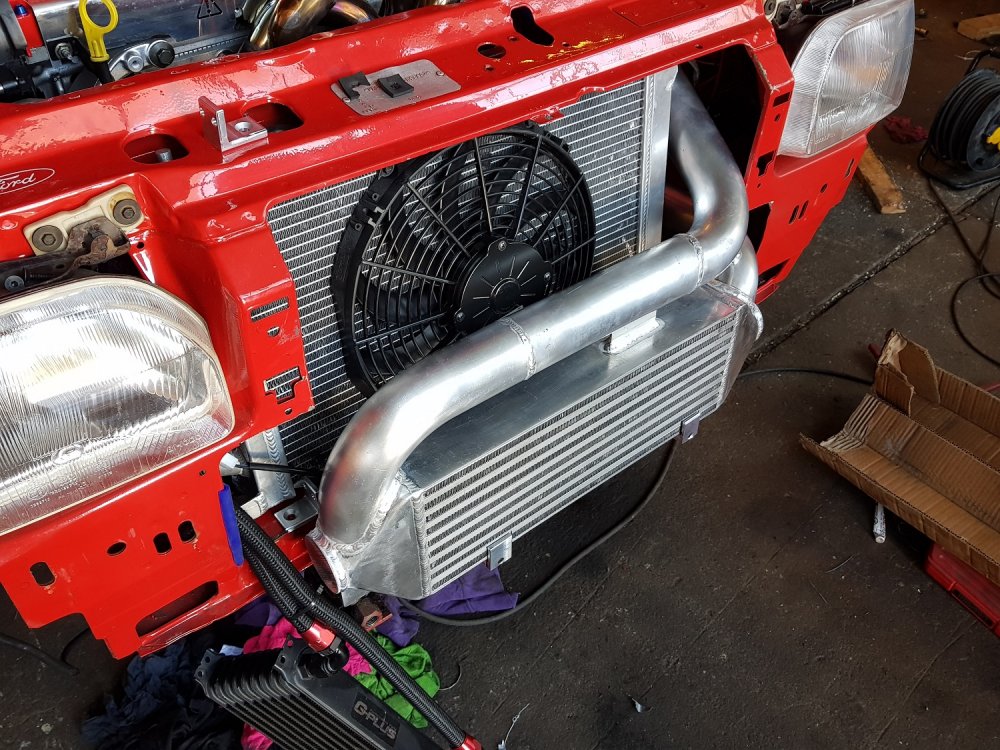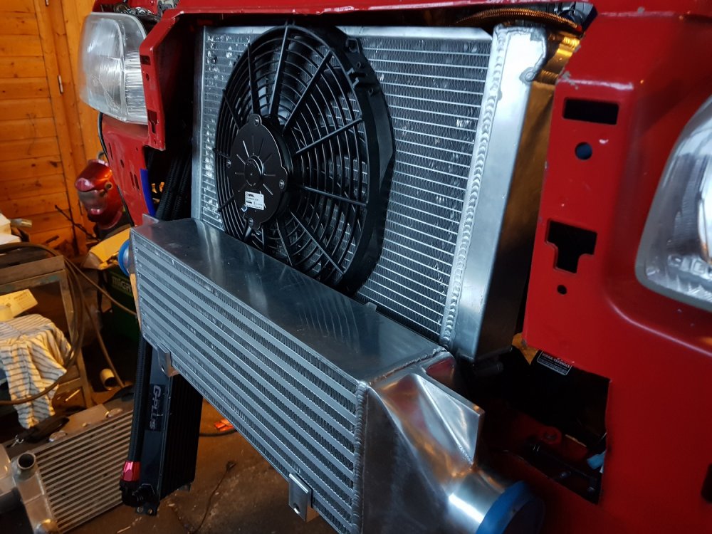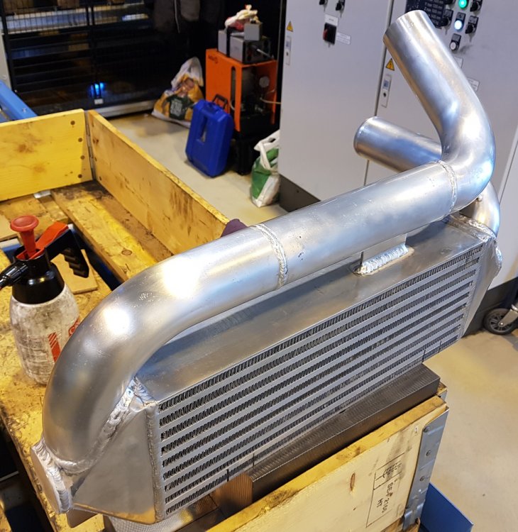 Intercoolern er ferdig,da må jeg skjære litt på baksiden av fanger for at den skal passe på. Også må jeg finne en ny plass til oljekjølern.