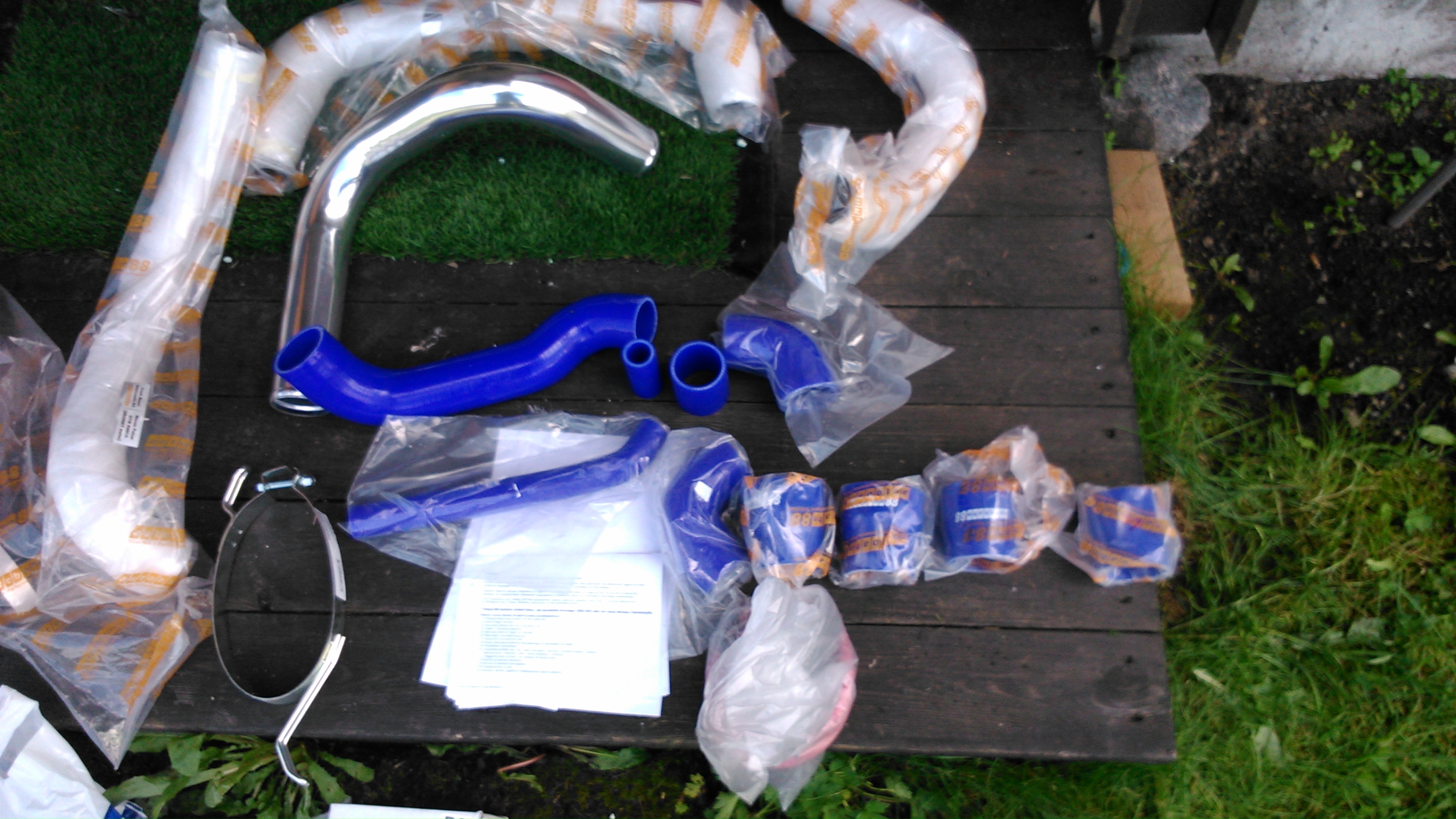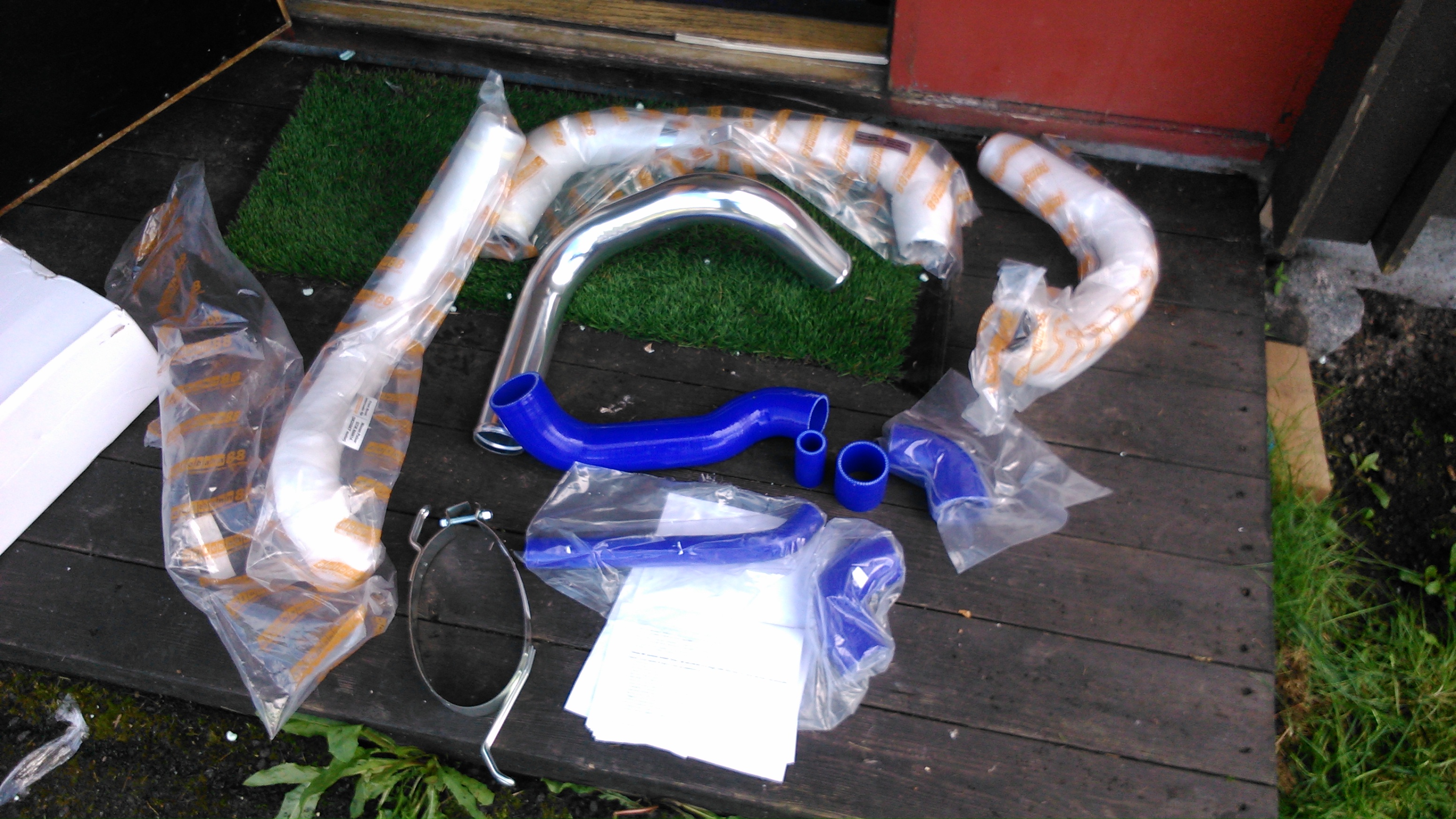 Da har jeg fått mer deler i posten bildene får tale for seg spennende dette ja har også fått den nye hjernen i posten pakken var det en fin viggen steg 1 ecu og så var det di store pakene grom potte som kom. Fikk også intercooler type diger og mye fine trykk rør kom dama måtte også sjekke ut størrelsen