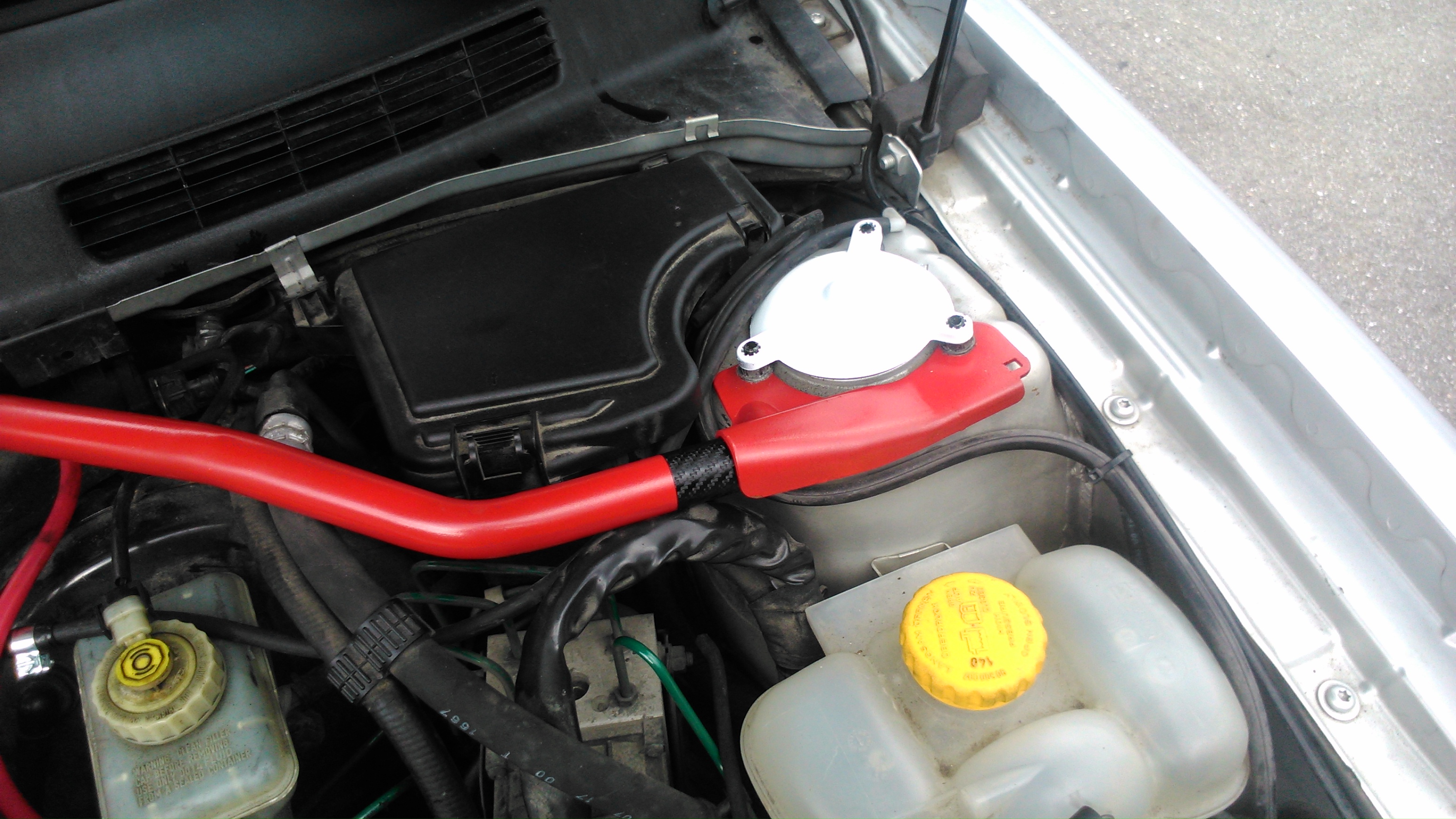 Noe av det første som ble gjort var å montere åpent filter får å få litt mer lyd og dump lyden. Monterte og så gule led i fangeren. Og dama malte bremse calipteran rød. Fikset også felgene hvite det gjorde mye, Grillen ble lakket svart og bak lykktene ble svart. Og ikke minst turboen havarerte Men ny oppgraderings turbo er på vei Pluss litt annet godt som ny stor intercooler dumpventil, samco slanger, div mmålere, dtm bakpotte. Oppgraderings veivhus ventilasjon. Bredbånds lambda. Turbo trykk måler. Obd2 tuner, viggen steg1 ecu 280hk/450nm.,å mye mer. Litt bilder motor riving
