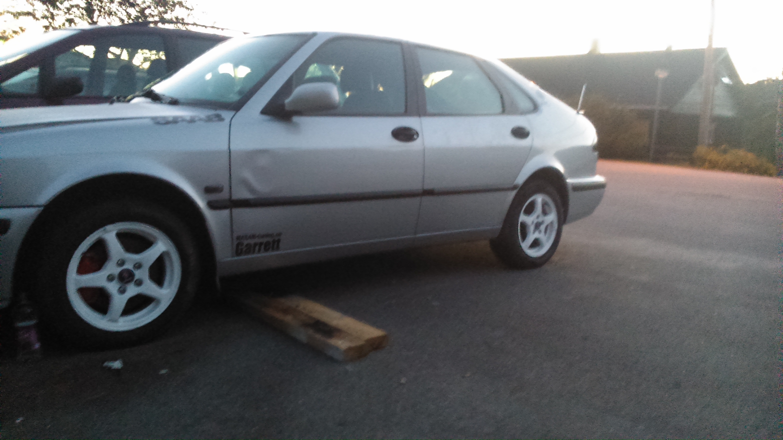 Ja har fått kappet opp støt fangeren for og gi mer kald luft til intercooleren. Har fått på litt klistremerker griffin og saab merker og qwt sponsor merker. Fikk og så bygget rør gate til intercooleren fra turbo og fra intercooler til spjeldhuset Det