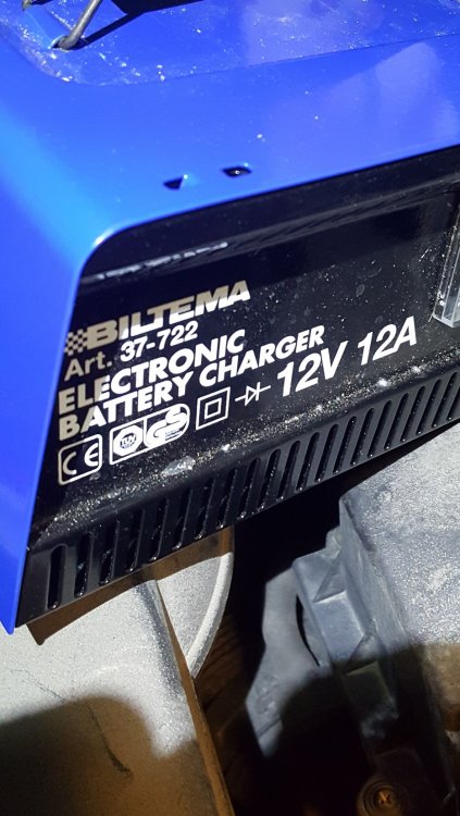 1. Batteriet ble flatt for et par uker tilbake. Startet først opp med startkabler, og satt på batteriladeren til høyre i ca. 12 timer. Bilen startet OK etter det.