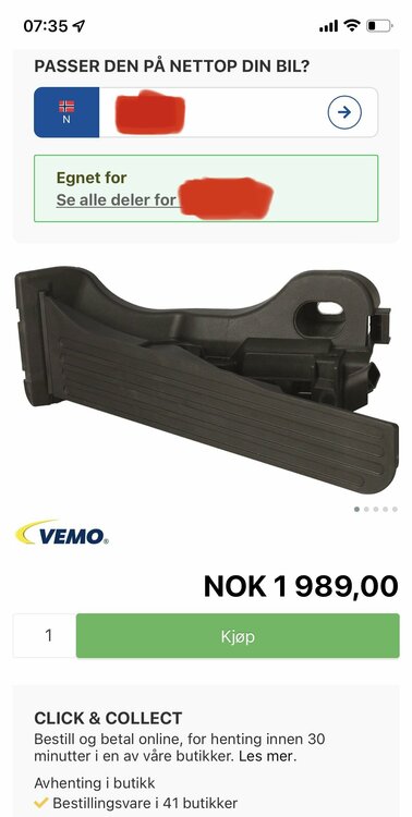 Vi var innom Tansen fordi de hadde en gasspedal på nettsiden som ser nesten identisk ut med den gasspedalen vi har i bilen. Når de søkte opp registreringsnummeret vårt i systemet mente de at de ikke hadde gasspedal som passer vår bil. Da vi viste dem produktet fra nettsiden ble de plutselig usikre og kunne ikke gi oss noen svar. Det er litt kjedelig og bruke 2000 på en del også skulle den ikke passe.
