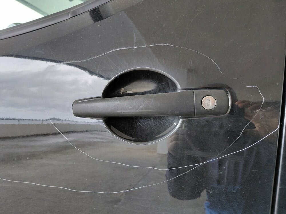 1. Hei, Bilen min har blitt utsatt for vandalisme og fått ei nokså lang ripe langs siden som vist på bildene. Jeg tenker å reparere det selv siden bilen nærmer seg 10år. Men jeg er usikker på hva som er beste metoden. Er det mulig å polere vekk ei slik ripe? Maskere, pusse og bruke spraylakk på boks? Påføre lakk med tynn pensel og pusse/polere?