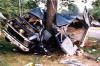 12. Hadde litt trøbbel med en varebil som prøvde å krysse veien i 80 sonen jeg...Skader for over 80000. På bildet står en kar og viser hvor kanalene buler ut. Forsikringsselskapet overtok vraket ja. Det verste av alt, var at jeg fant bilen til salgs hos en bruktbilforretning noen måneder senere. Jeg dro for å prøvekjøre den, og var "veldig interessert i å kjøpe". Spurte hvorfor bilen var nylakkert, fikk som svar at den ene framskjermen var skiftet, så hele bilen ble lakkert for å unngå fargeforskjell. Javel....... Jeg turte ikke å si at jeg hadde hatt bilen før (Selgeren var stor!).