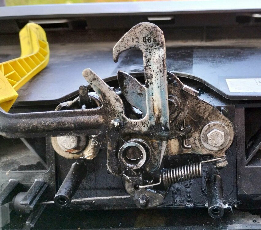 Er blitt sjekket og smurt nå 3 ganger på 2 verksteder og senere av meg flere ganger, fjærer og mekanisme fungerer normalt i følge verkstedene. Mekanikere mener bare problemet skal være løst når de har smurt, for da fungerer det normalt når de sjekker etterpå, og de ser ingenting annet som er galt. Men det som er problemet, er at når man åpner og lukker panseret, så fungerer det uansett normalt når man gjør det igjen, i mange timer etterpå. Men så gradvis begynner det å bli tregt igjen, og står den med panseret lukket til neste dag, så er problemet tilbake til akkurat samme. Går ikke opp når det åpnes, men spretter opp først etter ett minutt eller lenger, eller om man setter noe i mellom og hjelper til. Så det der ble en kinkig greie å finne svaret på. Andre erfaringer/forslag? Et par bilder om de kan si noe som helst: Ovenfra: