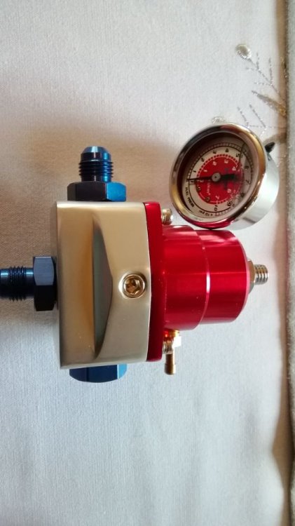 Ny og ubrukt AEROMOTIVE A1000-6 BENSINTRYKKSREGULATOR, med måler/manometer. Nypris 2800 uten manometer, selges kr 1000,- med manometer. Performance EFI regulator beregnet for middels til høy hestekrefter applikasjoner. Dette regulatorer har Aeromotive high-flow design, suverentrykkontroll og legendariske holdbarhet. På veien og på banen har denne trykkregulator logget mer miles, runder og går bedre enn noen annenperformance EFI regulator i verden! • Grunntrykk justerbar 40-75 PSI. • Bensin og E85 kompatible. • Bensintrykket stiger på en 1:1 ratio med boost. • 1 / 8 "NPT gauge port. • P / N 13109 gir (2) ORB-06 innløpsstusser og (1) ORB-06 retur port. https://www.ksr.as/products/aeromotive-a1000-6-bensintrykksregulator