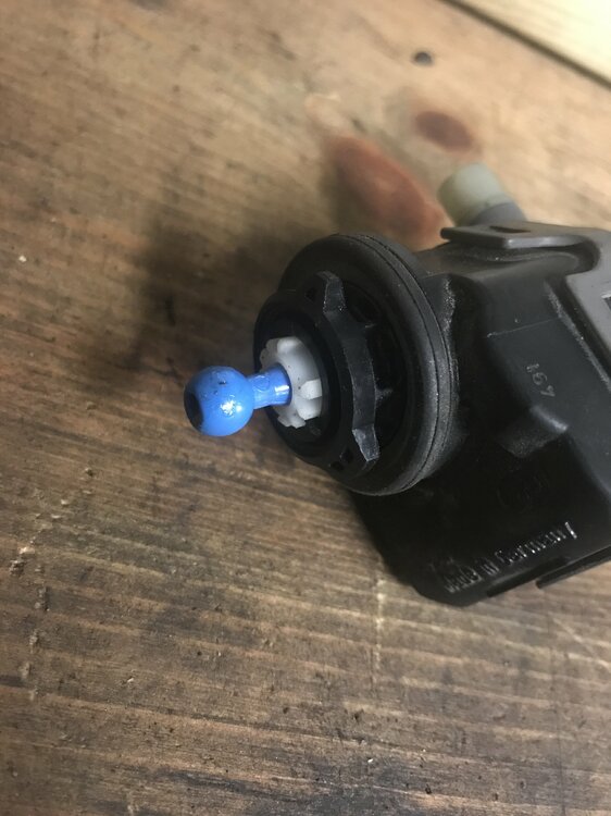 Hei på dere. Jeg har fått problemer ned å montere tilbake lysjusteringen venstre side etter jeg måtte bytte lyspære på konas bil.Jeg har sett film av dette på youtube men noe er litt rart. Det jeg lurer på er om den styringspinnen skal tres inn fra siden inn i sitt spor, eller om styringspinnen skal klemmes direkte ned i spore sitt. Her er det trankt. Jeg holder i gjen lykta så den er stødig men får ikke dette til. Noen som er 100% sikker på hvordan dette gjøres? legger med bilde av styringen som skal på plass.
