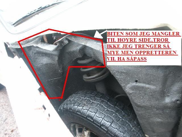 henning_dt85 Skrevet April 2, 2006 Rapporter Share Skrevet April 2, 2006 Polardego skrev: Dette er jo ikke deler som man har liggende på lager da, eneste løsningen er om du drar på huggern og henter selv, eller vi kan gjøre det for deg for en klekkelig sum... ;) Venstre innerskjerm kan jeg jo kappe ut selv, men hvertfall vangen klarer jeg ikke å kappe ut uten at motoren er tatt ut. Har dere ikke noen delebiler e.l. på værste? Er jo desverre ingen brukbare biler på høggern her oppe, bare 3 terninger desverre. Den høyre innerskjermen tror jeg at jeg driter i, jeg kjøpte delenr. 902044-2 fra veng, som dekker den stygge knekken på bildet. Vangen er det viktigste jeg må få skaffet før arbeidet kommer igang. Klekkelig sum vil si...? MVH Henning Siter Amazon 65-strøken bil amazon 67-prosjekt Volvo 245 85-Bruksbil Lenke til kommentar Del på andre sider More sharing options...