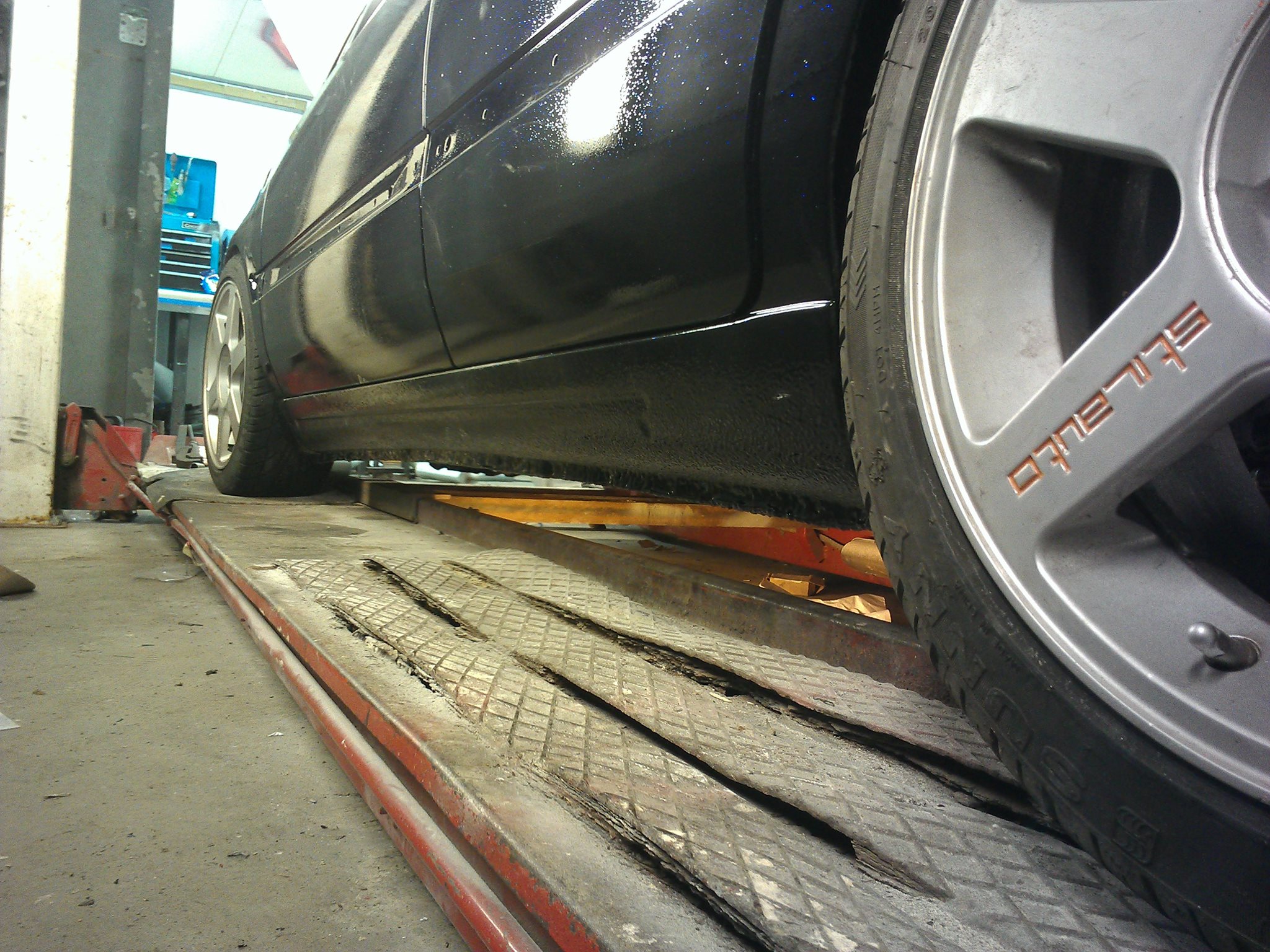 jeg demonterte hele bilen, kun framrute og elnett var igjen, jeg byttet begge kanalene, dempertårn bak, innerbuer bak, innerkanaler, jeg lagde nye gulv deler pga rust, nye jekkfester, og forsterket opp rammen bak da denne har vert smelt før, jeg fjærnet alt av rust og blank slipte understellet på bilen og sprøytet med 2komp epoxy grunning eg smurte der etter karrosseri skitt over alle mulige utsatte plasser og skjøter, jeg sprøytet derretter med struktur masse fra wurth, og etter det dekket med sort bodyshoot fra hagmans. Et godt tykt lag. etter dette matteg ned dette og lakerte det blank sort. benga jeg gjorde det samme innvendig og i samme slengen jeg holdt på så tok jeg og brukte audi metoden på hjulbuer bak og limte og slo inn kanten bak så den ikke ser valset ut men heller ser org ut men sparer bilen for mye drit og rust samler sted...